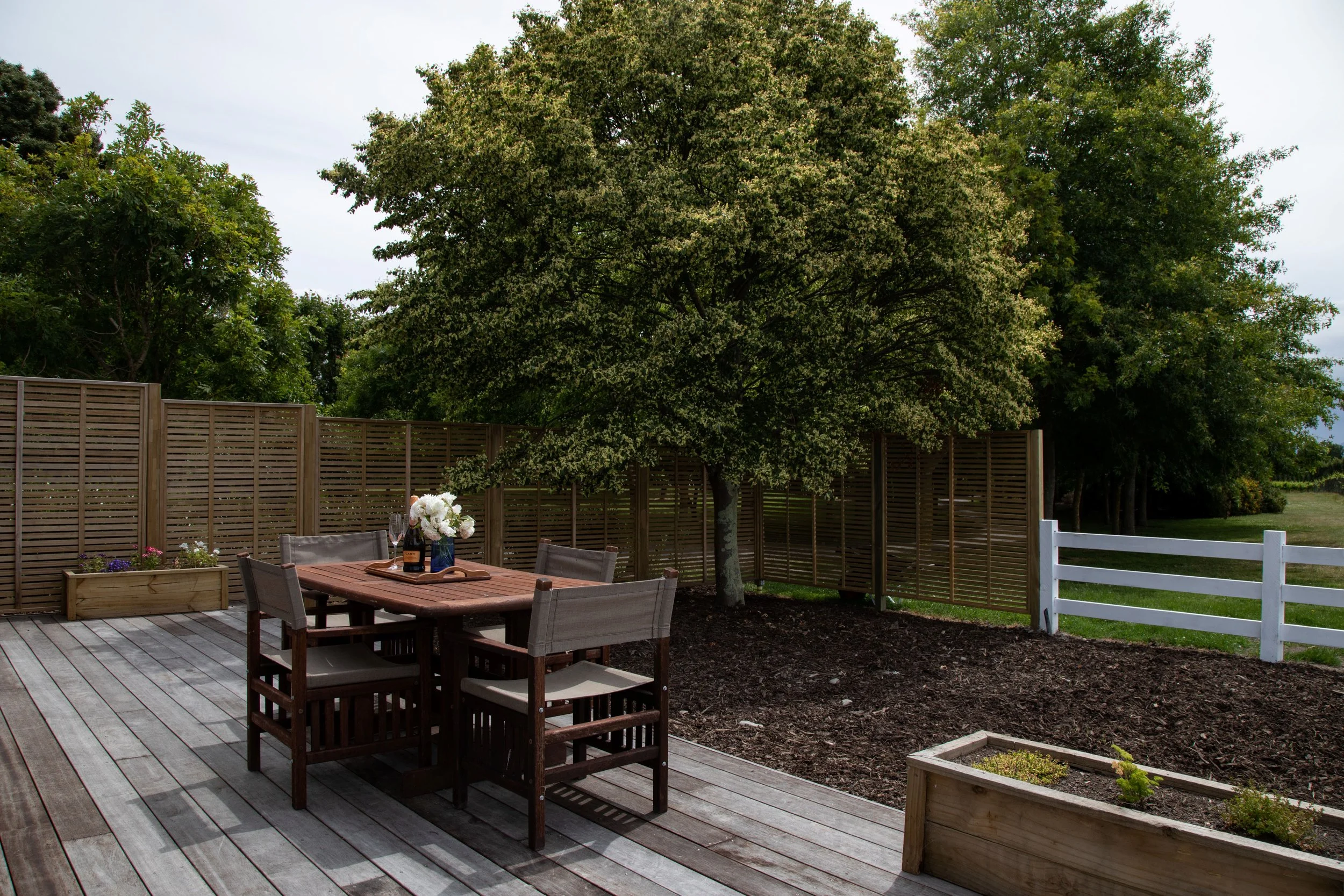 Outside: Large outside deck with table & chairs | Garden area with casual seating | Country-styled garden overlooking the vines | Large outside deck with tables & chairs | Country Garden